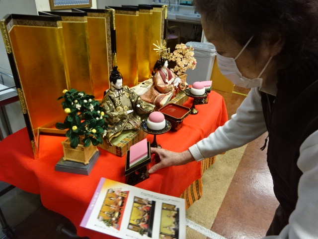 明日は3月3日のひな祭りです。 センターでは今日ひな祭りクイズ大会を行いました。 写真のようなクイズを11問、皆さん真剣に解答してくれました。 (お雛様の並びは正面から見てどっち? 「右」または「左」 正解は最後に) おやつはもちろん雛あられ。 最後に職員の生演奏による「うれしいひなまつり」を合唱して楽しみました。 クイズの正解は「右」です。ただしこれは東日本に多いようで、 西日本方面では「左」が正解のようです。