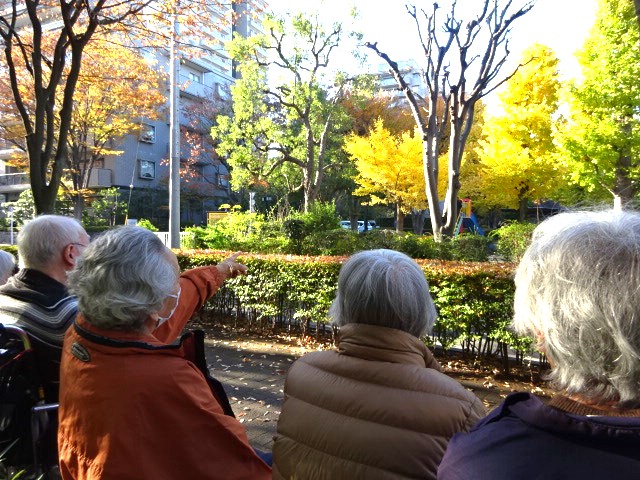木々が色づき、紅葉を楽しむため池上本門寺と養源寺、施設周辺の散策に出掛けました。 光が当たるとさらに美しい景色が広がり、寒いけど外に出て良かったと話されていました。