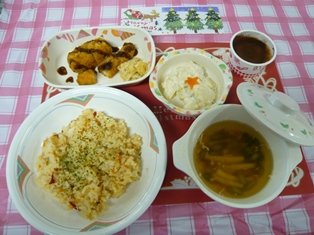 給食スタッフ一同、彩り、盛り付けなど見た目に美しく、季節を感じることができる食事になるように心を込めて調理しています。