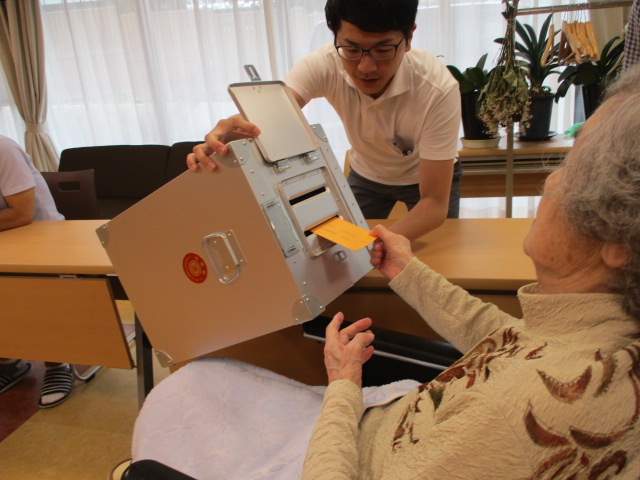 東京都議会議員選挙の不在者投票を行いました。当ホームでは初めての不在者投票です。 大田区選挙管理委員会より立会人にお越し頂き、希望者全員が投票を行いました。