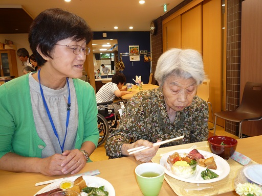 特別養護老人ホーム馬込では初めての敬老の日を迎えることができました。 小さなホームの大きな想いをこの会に込めました。 ご参加頂いたご入居の皆様、ご参加ありがとうございました。そしておめでとうございます。 ご入居の方全員ご参加頂きました 普段、食の細いご入居者も完食 式典後には手作りのお菓子とお茶