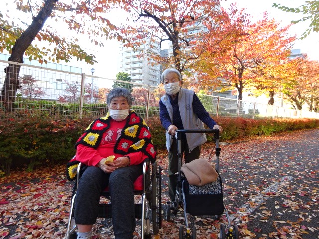 木々が色づき、紅葉を楽しむため池上本門寺と養源寺、施設周辺の散策に出掛けました。 光が当たるとさらに美しい景色が広がり、寒いけど外に出て良かったと話されていました。